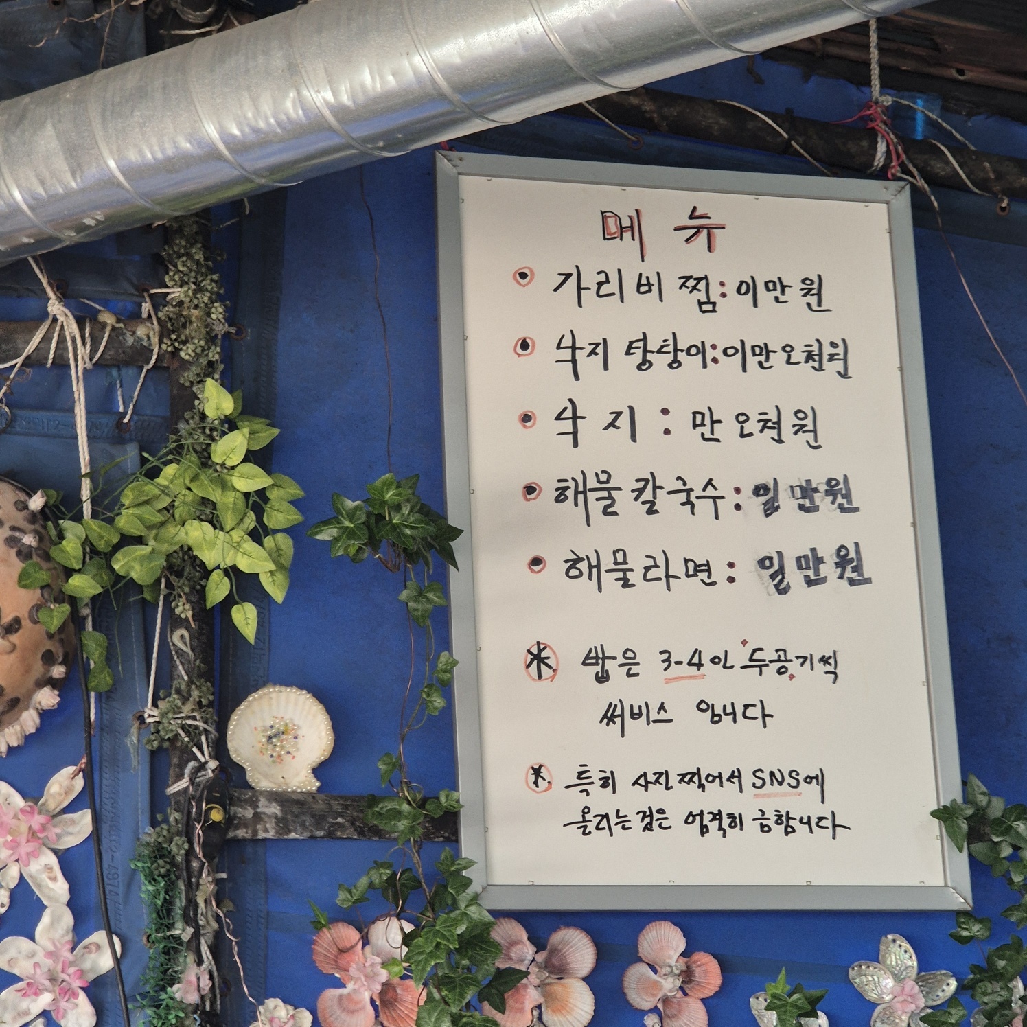 - 가리비 메뉴가 있지만 많이 잡히지 않은 터라 없을때가 많아요.