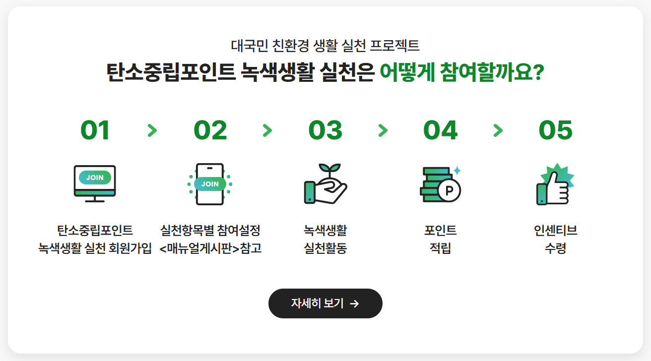 탄소중립을 위해 일상에서 실천 가능한 친환경 행동을 하면 포인트를 적립해주는 제도예요.