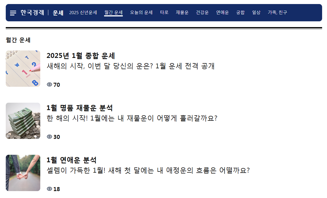 한국경제에서 제공하는 신년운세에는 타로점이나 재물,건강,연애,궁합등 다양한 운세를 제공합니다.